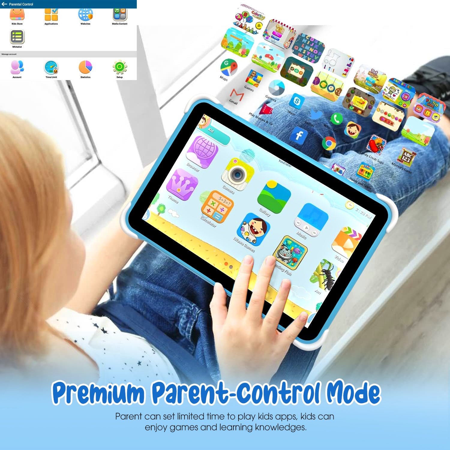 - [Parental control and ideal gift for children]: Doosl 10.1"Kids Tablet presents both parent mode and child mode at the same time. Its parental control dashboard enables parents to restrict or prohibit access to certain applications, browsers, and set time restrictions. Parents can also add content to child mode, such as apps and videos downloaded from Google Play in parent mode. This is a great gift tablet, suitable for children?s birthdays, school supplies, Thanksgiving, Christmas, and other holidays.